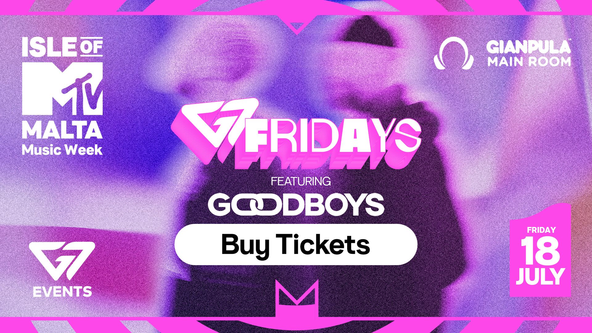 - G7 FRIDAYS ft. GoodboysCatch chart-toppers GOODBOYS live at Malta’s biggest club night G7 FRIDAYS at Gianpula Main Room.